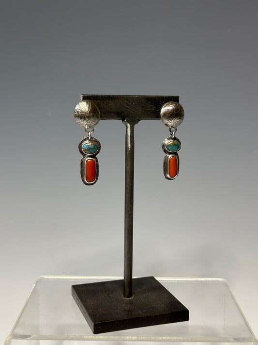 TURQUOISE AND VINTAGE CORAL EARRINGS NM583E