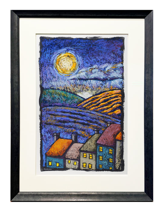 "SUNSET OVER ROOFTOPS" Original Pastel Framed