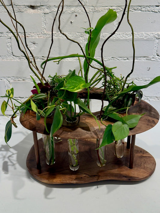 8 TUBE WOOD ROOT PLANTER STAND AND HOLDER