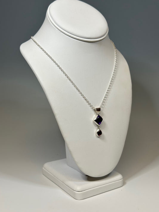 AMETHYST AND GARNET STERLING SILVER NECKLACE - NM611