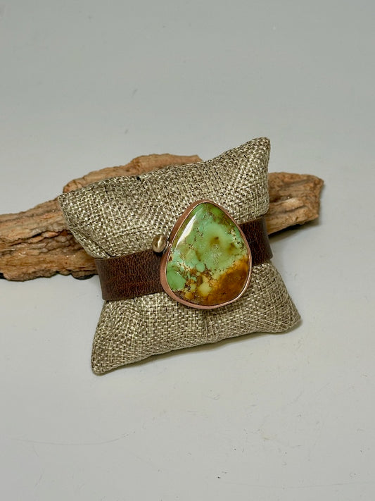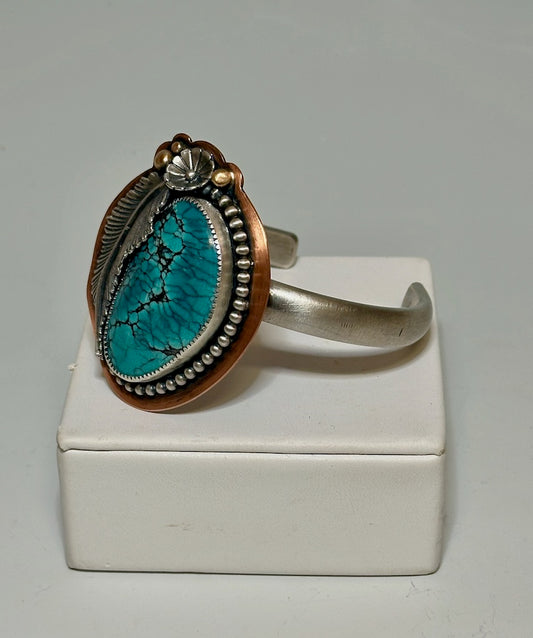 BAMBOO MOUNTAIN TURQUOISE COPPER AND STERLING SILVER RING JK114