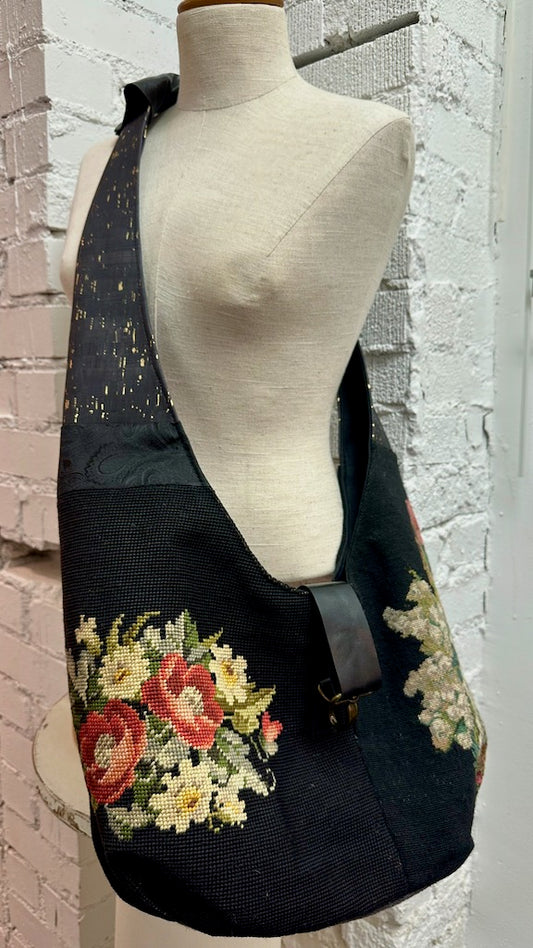 BACK IN BLACK VINTAGE TAPESTRY CROSS BODY BAG