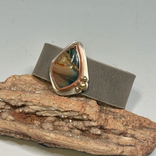 BLUE MOUNTAIN JASPER LEATHER CUFF JK231