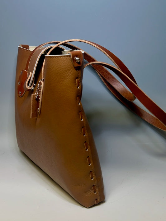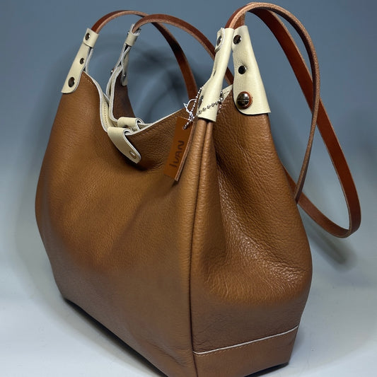 CARAMEL AND CREAM LEATHER HOBO BAG II279