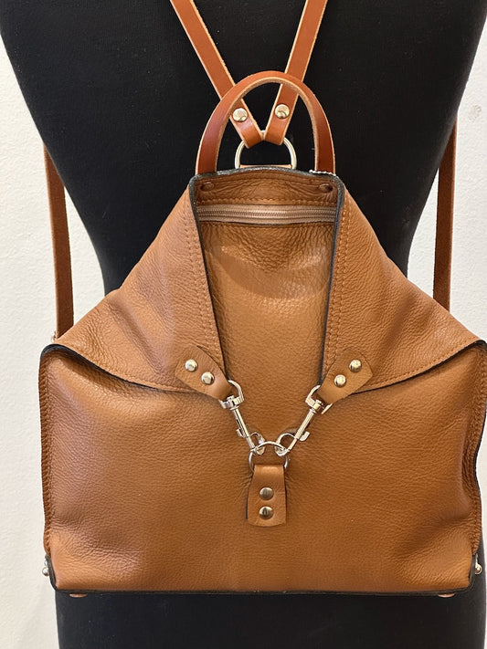 CARAMEL SOFT LEATHER BACKPACK WITH ZIPPER BACK POCKET II275