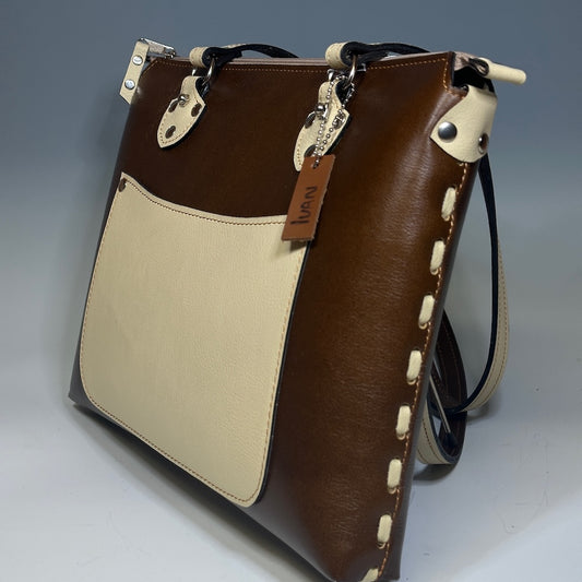 CHOCOLATE BROWN AND CREAM TOTE HANDBAG II286