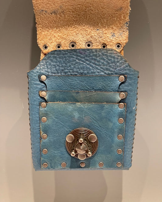 Distressed Blue Leather Cell Phone Case with Silver Closure MMP2