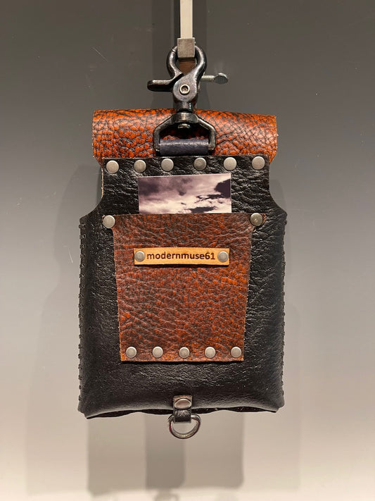 Distressed Black and Brown Leather Cell Phone Case with Silver Closure MMP9