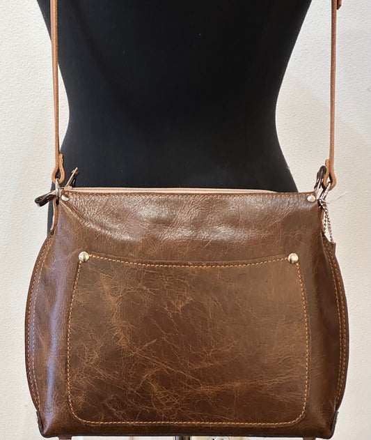 DISTRESSED BROWN LEATHER MEDIUM CROSSBODY BAG II267