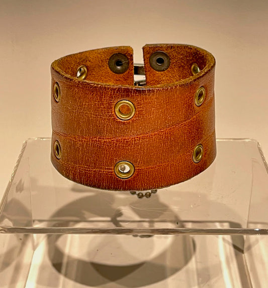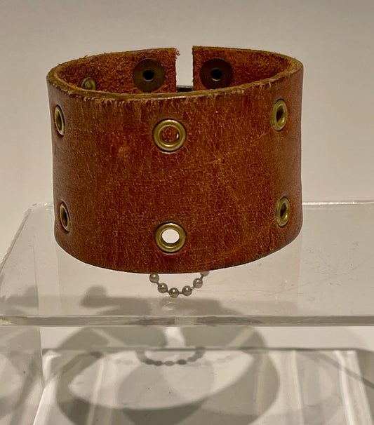 Distressed Brown Leather Cuff with Brass Closure MMC8