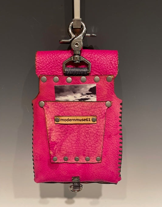Distressed Bright Pink Leather Cell Phone Case with Silver Closure MMP5