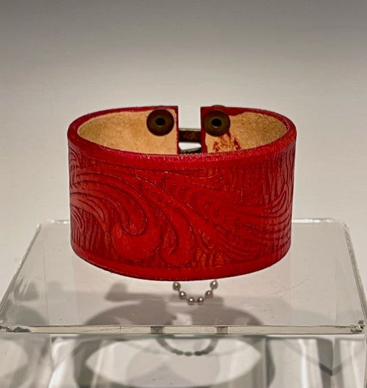 Distressed Red Leather Cuff with Brass Closure MMC11
