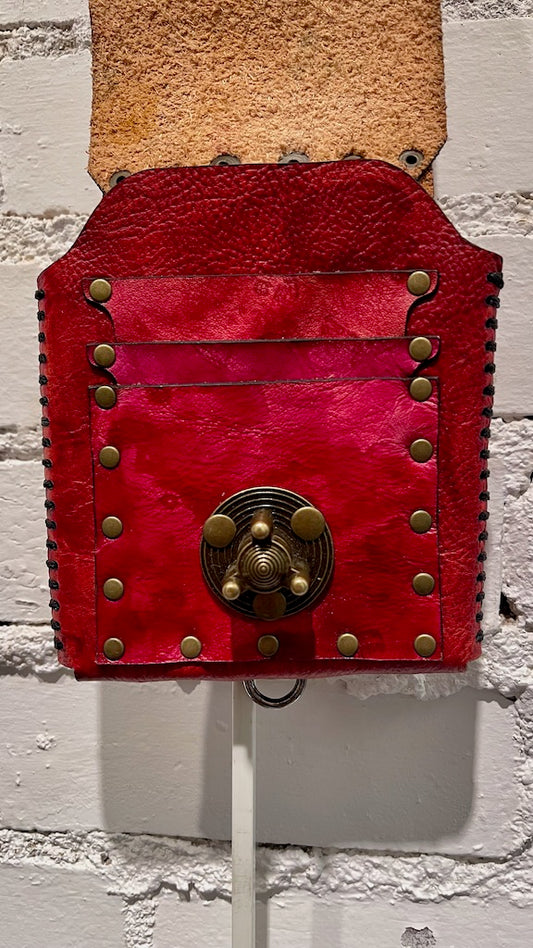 Distressed Red Leather Cell Phone Case with Silver Closure MMP18