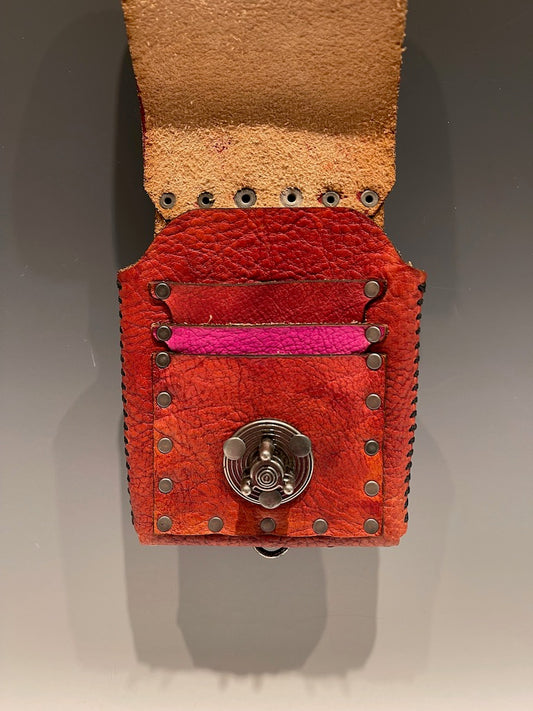 Distressed Red Leather Cell Phone Case with Silver Closure MMP4