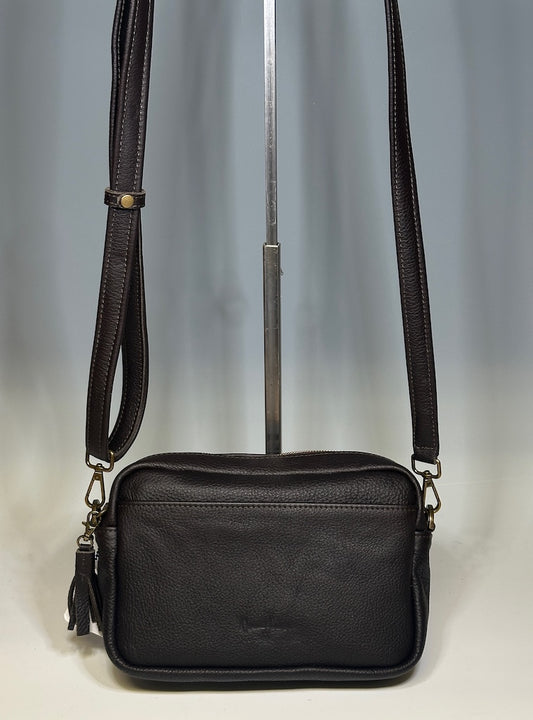 LEATHER CROSSBODY BAG, ESPRESSO - NH107
