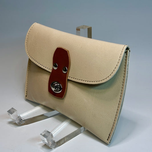 LIGHT BEIGE LEATHER CARRY ALL POUCH WITH FRONT CLASP CLOSURE IIW102