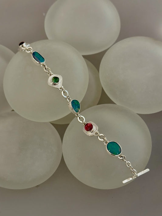 OPAL AND MULTI COLOR TOURMALINE STERLING SILVER BRACELET NM584B