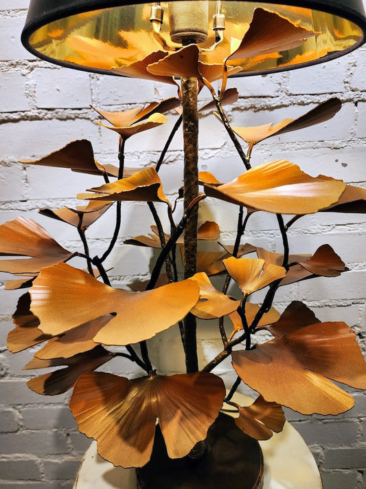 ORANGE GINKO LEAF LAMP W/ BLACK SHADE