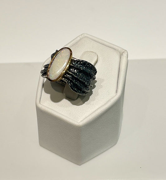 OPAL OXIDIZED RING WITH STERLING SILVER BR0976