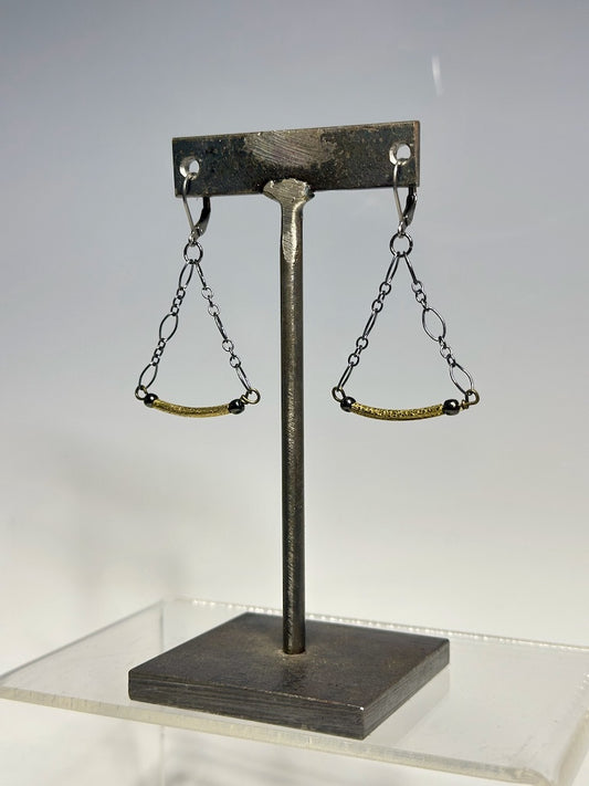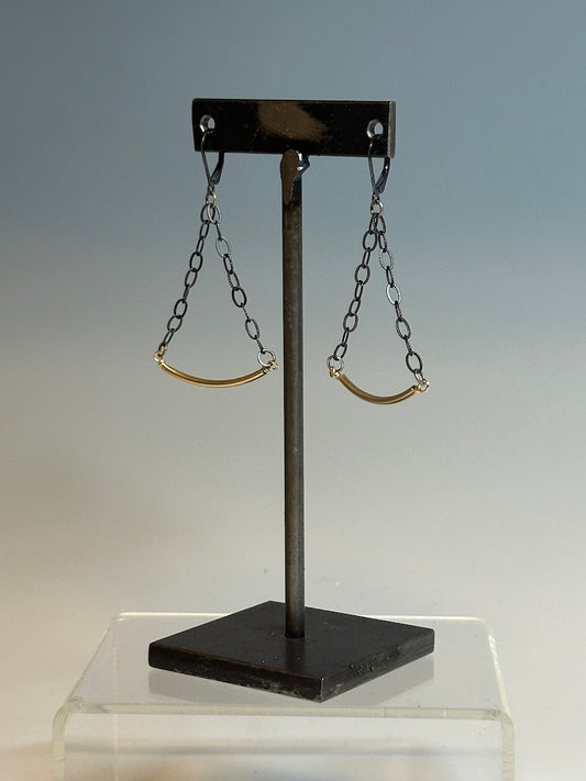 OXIDIZED STERLING SILVER AND GOLD FILLED BAR DROP EARRINGS LCE896