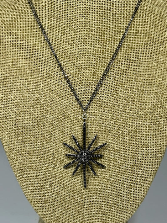 OXIDIZED STERLING SILVER AND DIAMOND STARBURST PENDANT WITH DOUBLE OXIDIZED STERLING SILVER CHAIN LCN1069