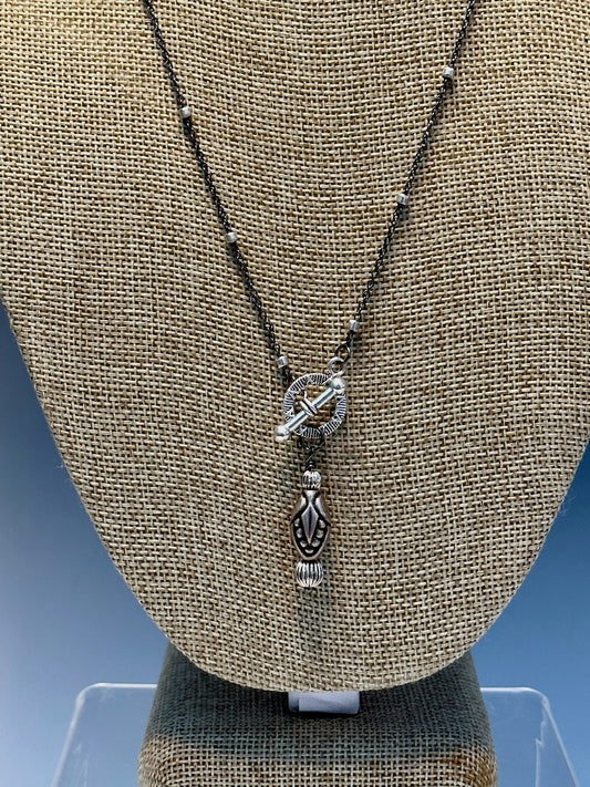 OXIDIZED STERLING SILVER AND VINTAGE BEAD FRONT TOGGLE NECKLACE LCN494