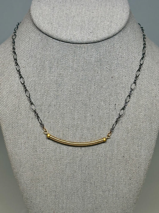 OXIDIZED STERLING SILVER AND GOLD FILLED BAR NECKLACE LCN969