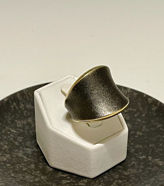 OXIDIZED STERLING SILVER AND 14K WIDE BAND RING BR215145