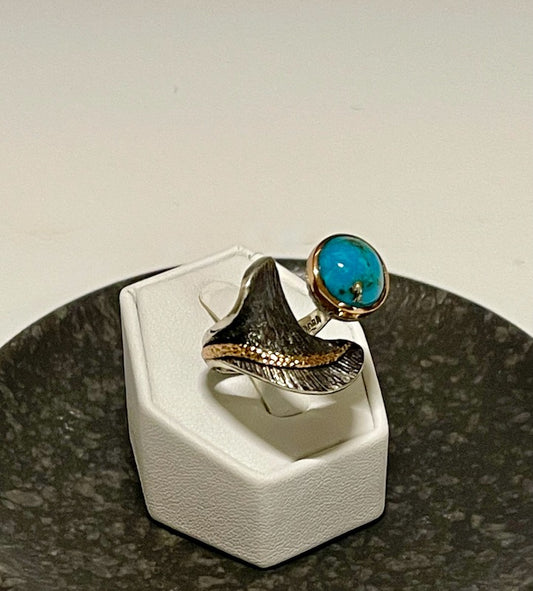 OXIDIZED STERLING SILVER AND 14K WRAP RING WITH TURQUOISE BR247185