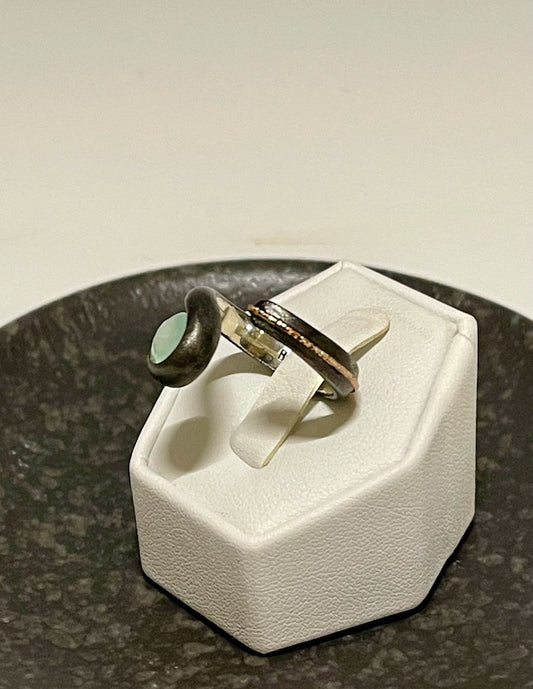 OXIDIZED STERLING SILVER AND 14K WRAP RING WITH CHALCEDONY BR125110