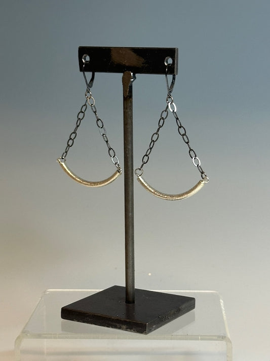 OXIDIZED STERLING SILVER CHAIN AND GOLD FILLED CROSS BAR EARRINGS LCE887