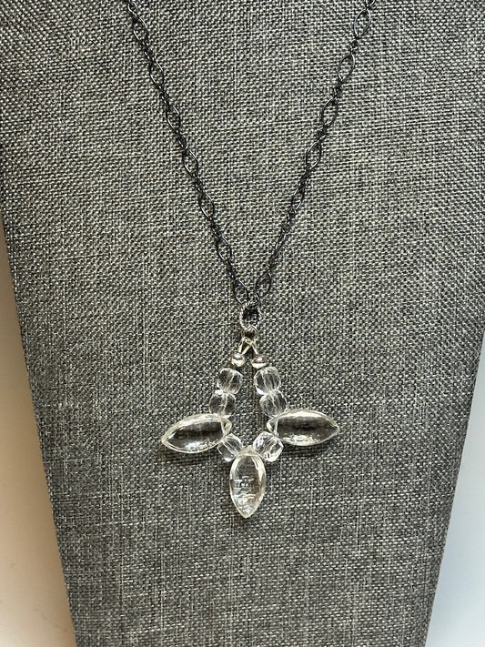OXIDIZED STERLING SILVER CHAIN NECKLACE WITH CRYSTAL FOCAL PENDANT LCN711