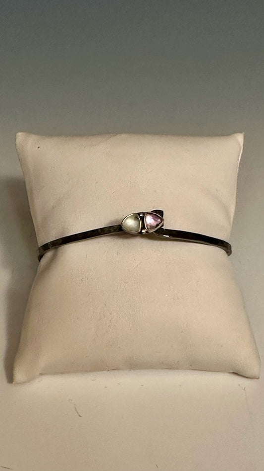 OXIDIZED STERLING SILVER BANGLE WITH AMETHYST AND AQUAMARINE NM459B