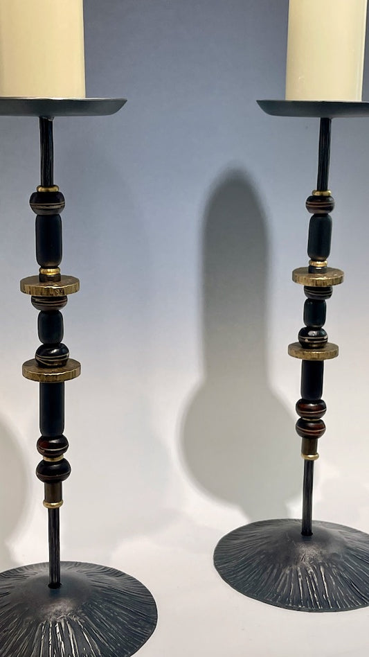 PAIR OF HAND FORGED CANDLE STICKS WITH AFRICAN BEADS SJCS1
