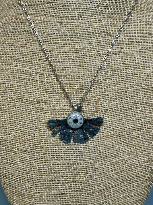 RESILIENCE CHOKER NECKLACE WITH COPPER GINGKO LEAF AND WATER BUFFALO BONE MOON FACE JH41