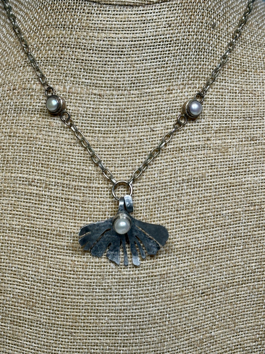 RESILIENCE CHOKER NECKLACE WITH COPPER GINGKO LEAF AND VINTAGE ROUND "PEARL" CABACHON JH48