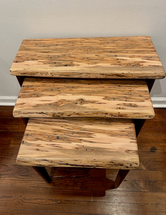 SET OF 3 AMBROSIA MAPLE NESTING TABLES W/WALNUT LEGS