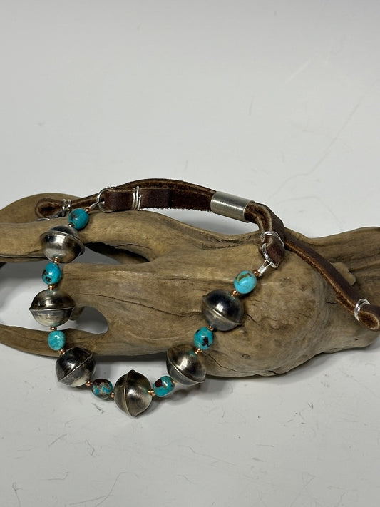 SILVER PEARL AND TURQUOISE ADJUSTABLE BRACELET