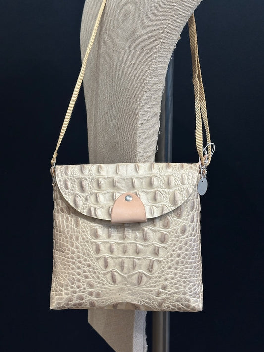 SIMPLE FLAP OVER CROCODILE EMBOSSED LEATHER CROSSBODY HANDBAG II203