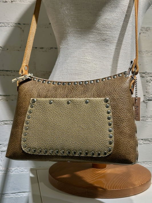 TOBACCO ZIP CROSSBODY HANDBAG WITH ADJUSTABLE STRAP II211