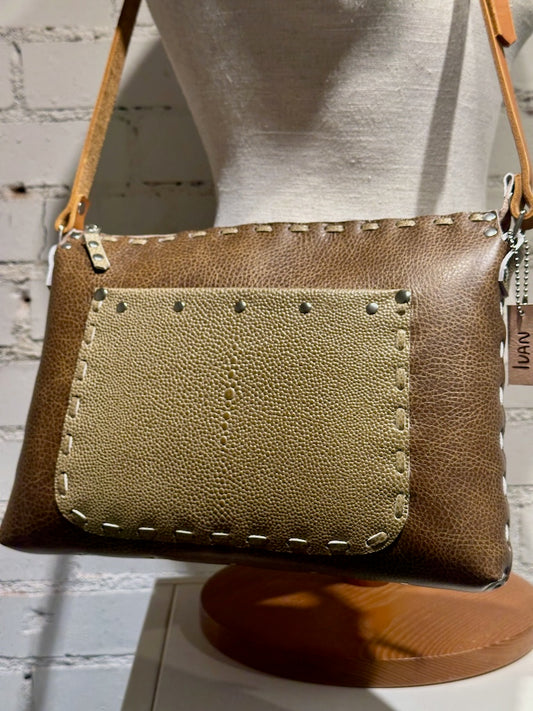 TOBACCO WITH STINGRAY LEATHER CROSSBODY HANDBAG WITH ADJUSTABLE STRAP II224