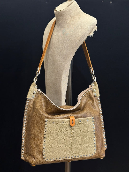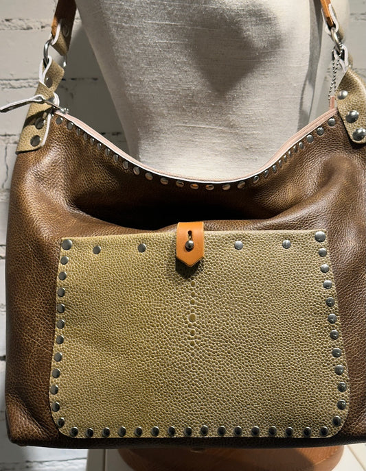 TOBACCO WITH STINGRAY LEATHER HOBO HANDBAG TOTE II233