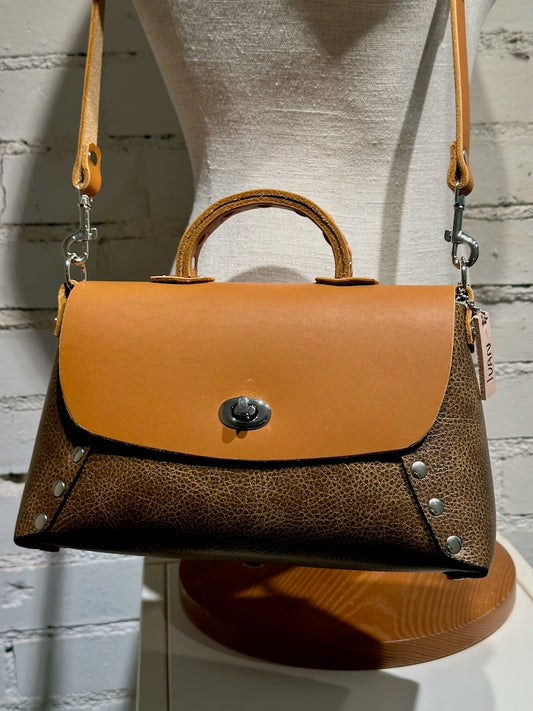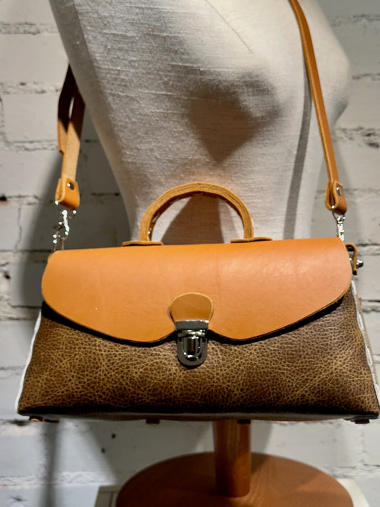 TOBACCO LEATHER CROSSBODY HANDBAG WITH ADJUSTABLE STRAP AND SHORT HANDLE II236