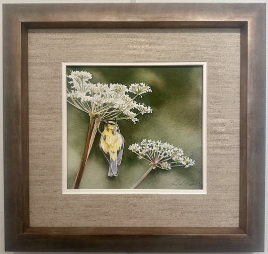 "FINCH IN QUEEN ANNE'S LACE" ORIGINAL WATERCOLOR/FRAMED