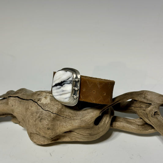 Sold outWHITE BUFFALO TURQUOISE LEATHER CUFF