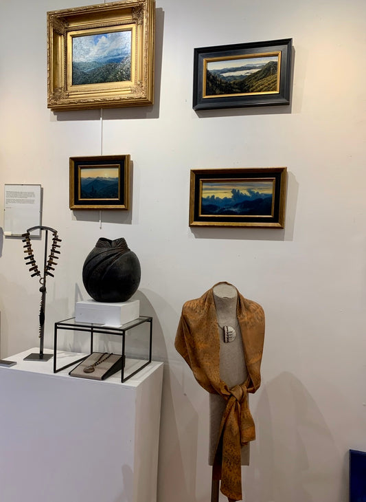 “Mountain View 4” Framed Encaustic/Oil/Cold Wax on Cradled Panel