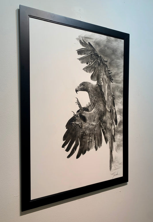 “Golden Eagle” Original Fumage Drawing on Clay Board