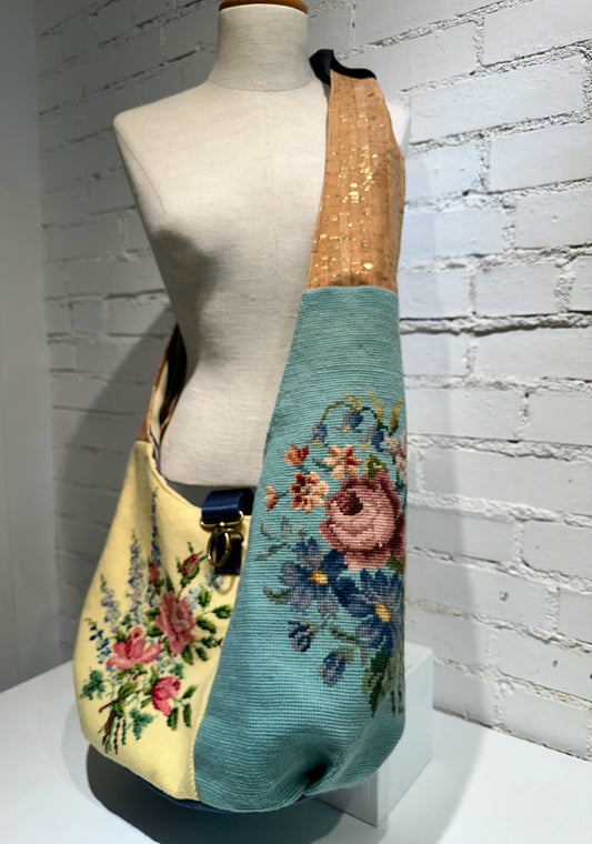 "FLOWERS AND STRIPES" Vintage Crossbody Handbag