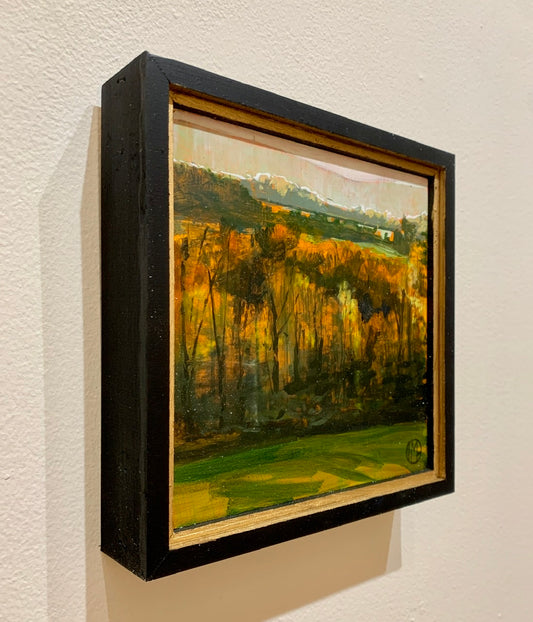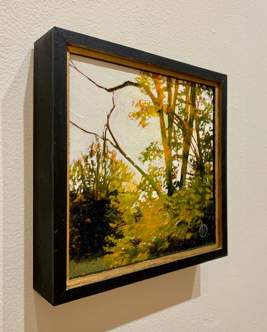“Fog Lifting” Framed Oil and Cold Wax on Cradled Panel