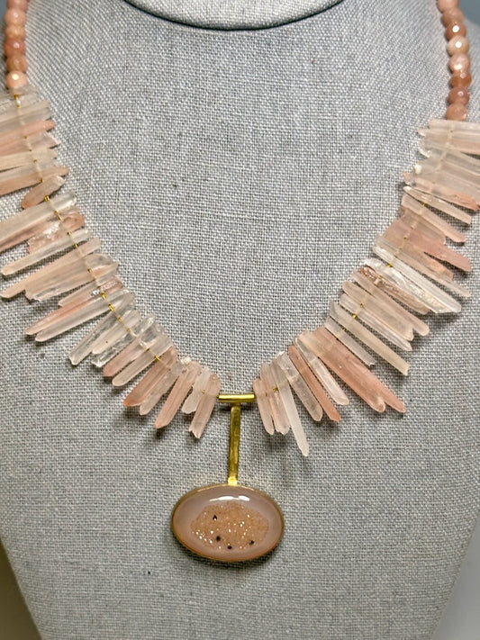 "GROWTH" DENDRITE QUARTZ WITH RUTHENIUM PLATED SILVER CHAIN